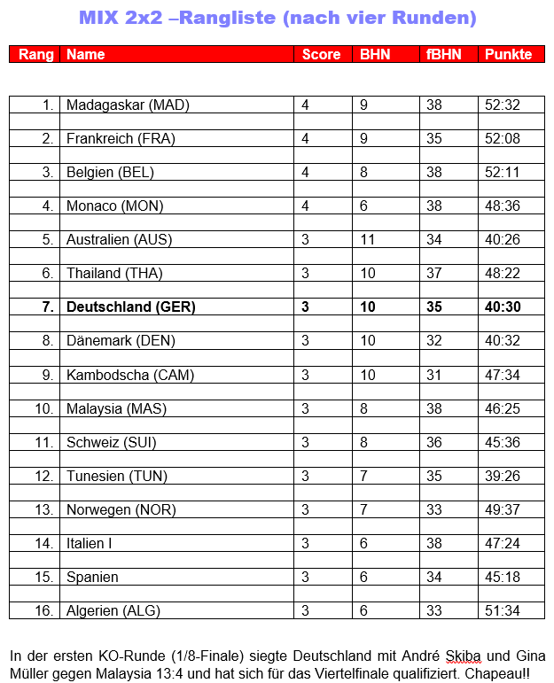 Mixte, 1/8, A. Skiba und G. Müller vs. Malaysia > 13:4